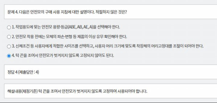 4. 턱 끈을 조여서 안전모가 벗겨지지 않도록 고정되지 않아도 된다.