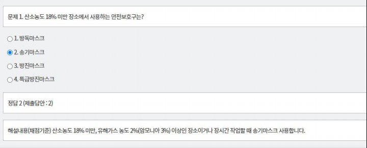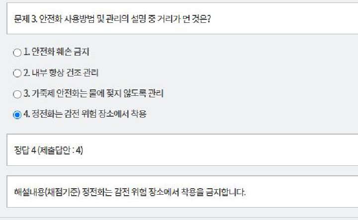 산업안전보건교육은 작년과는 다르게 총 4문항 출시 80점 이상 맞아야 통과합니다.